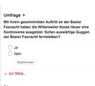 Oder etwas differenzierter: Die Relevanz der heutigen Umfrage der Baslerzeitung haut mich regelrecht vom Hocker. Beim Austragen dieses Konflikts wird wohl Blut fliessen.