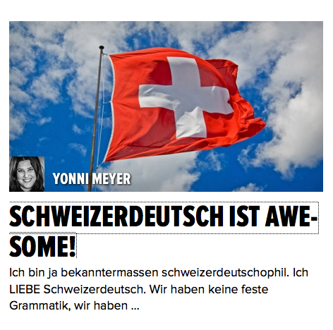 Das Thema Mundart sollte man ja als Ausländer lieber grossräumig umfahren. Nach all den Jahren, die ich mit dem Studium der Sprachwissenschaft verbringen durfte, hat’s mir aber beim neuen kult-Artikel von Yonni Meyer ein bisschen zu sehr in den Fingern gejuckt, als dass ich das hätte durchgehen lassen können. Neben dem theoretischen Training kann ich mich auch empirisch auf 11 Jahre Feldforschung zum hiesigen Sprachgebrauch stützen und darf daher mit Fug und Recht behaupten, dass Meyers Artikel oberflächlich und schönfärberisch verfasst und äusserst ungenau recherchiert ist. Dafür, dass sich Meyer so gerne auf ihren akademischen Background beruft und anscheinend auch Sprachwissenschaften studiert hat, sollte sie es eigentlich besser wissen.
