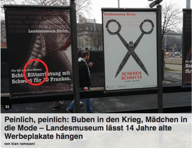 Dear Swiss people, Mit der Gender-Sensibilität von pinken Überraschungseiern wirbt das Landesmuseum für zwei seiner Dauerausstellungenhaben mit ansprechenden Plakaten, direkt zugeschnitten auf ihr Zielpublikum; watson berichtet: Und hier die Nahaufnahmen der Plakate: Ja. Toll. Jungs mögen Waffen und keine Kleider. Allgemein können männliche Lebewesen absolut nüscht mit Haute Couture anfangen. Deswegen gibt es auch so […]