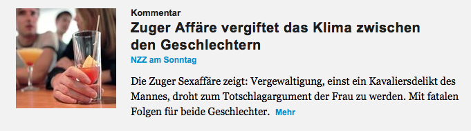 Dear Swiss people, In der Berichterstattung um die sogenannte „Zuger-Affäre“ ist der Tiefpunkt anscheinend noch lange nicht erreicht. Hier das Neuste von der NZZ am Sonntag: Oh boy. Where to start. Mal ganz von vorne: Erinnern sich noch alle an die guten alten Zeiten, als Vergewaltigung ein Kavaliersdelikt war? Also etwa vor 1992, als Vergewaltigung […]