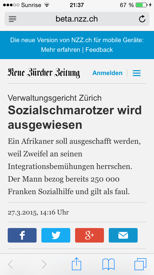 Dear Swiss people, Mir ist natürlich bewusst, dass Gastkommentare gerne mal reisserisch und kontrovers formuliert werden und nicht grundsätzlich mit der Linie des Publikationsmediums übereinstimmen müssen. Aber was sich die NZZ mit dem Beitrag von Robert Nef geleistet hat, geht wirklich auf keine Kuhhaut. So ein hanebüchenes, sinnbefreites und selbstgefälliges Geschwafel hab ich schon eine […]